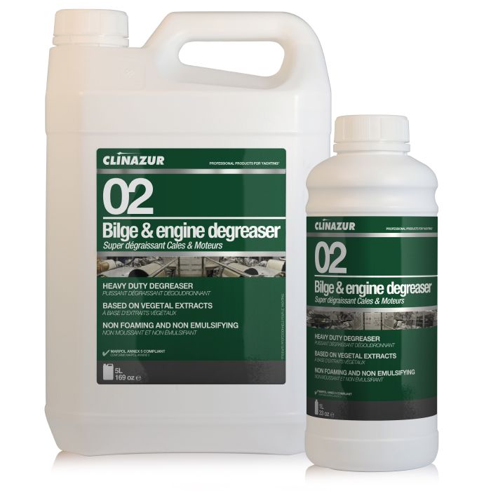 El 02 es un limpiador biodegradable, inodoro y altamente efectivo. Para la limpieza de las sentinas y los fondos de los motores.