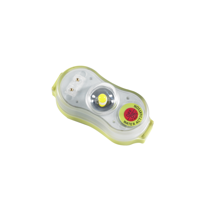 Luz estroboscópica LED de alta intensidad - Activación manual o automática (inmersión) - Autonomía de más de 8h (20h en condiciones óptimas) - Bordes redondeados para preservar la integridad de los chalecos. Modo de iluminación: FLASH - Batería: Litio no peligroso. Vida útil de 5 años (no reemplazable). Cumple con las normas del DOT y la IATA para un transporte seguro - Tamaño 6.19 x 3.02 x 2.87 cm