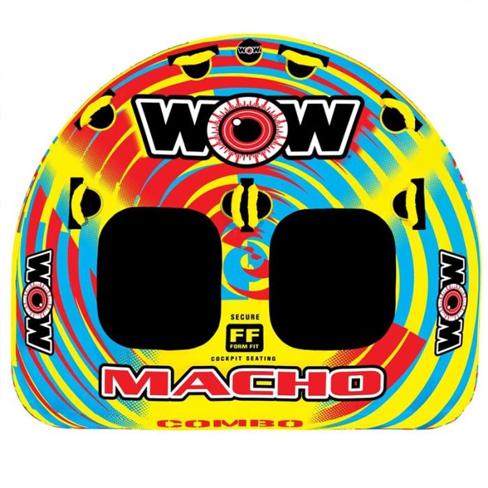 El Macho Combo de WOW es un nuevo tipo de tipo de hinchable arrastrable, el cual puede ser utilizado como arrastrable tradicional (en otras palabras acostado sujetándose de las asas) pero si esta posición no es muy sencilla puede igualmente ser utilizado sentado; el Macho Combo es multiposiciones y puede ser utilizado acostado, sentado o de rodillas. Los asientos poseen un arnés en nylon resistente que impide que la parte posterior de los usuarios toque el agua.