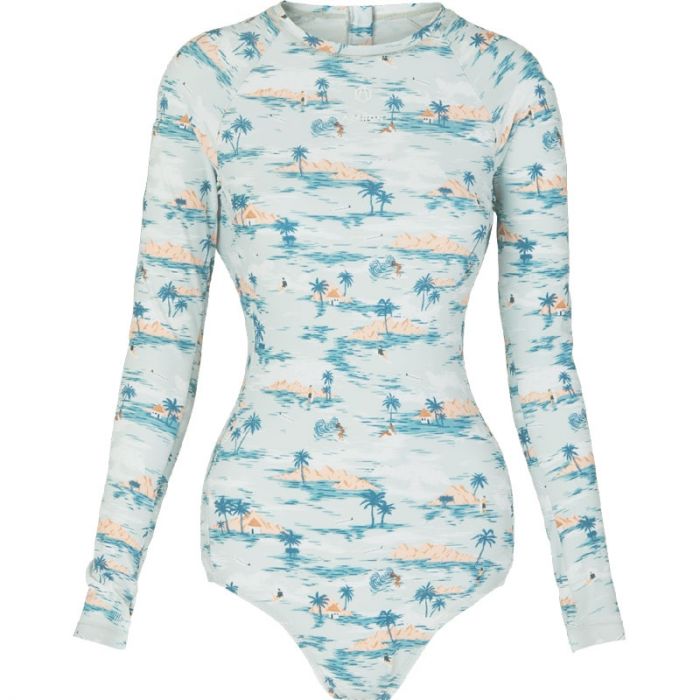 Precio normal 45,00 € -50% Perfecto para sesiones de surf o paddle surf tabla y largas jornadas en la playa, el body de manga larga presenta un estampado hawaiano vintage y protección solar UPF 50.