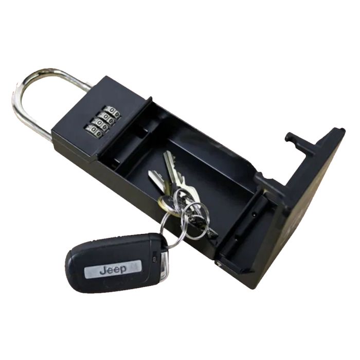 Esta caja de llaves tiene un sólido mecanismo de fijación y una cerradura con código de seguridad de 4 dígitos.