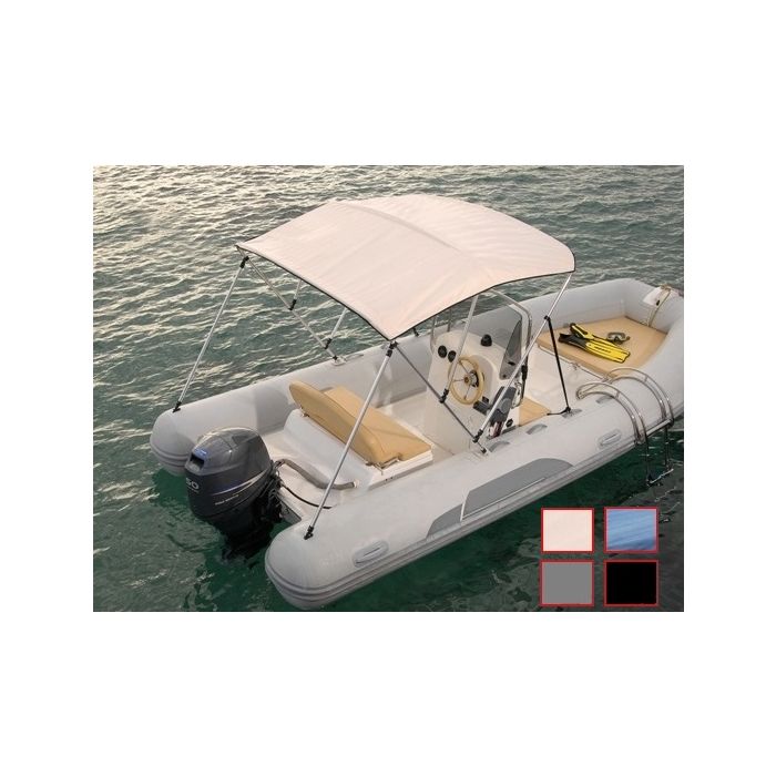 Toldo para barcos - Altura 1160 mm - Anchura máxima. 1675 mm - Anchura mínima 1550 mm - Longitud 1800 mm - Disponible en blanco crudo, azul marino, gris, negro
