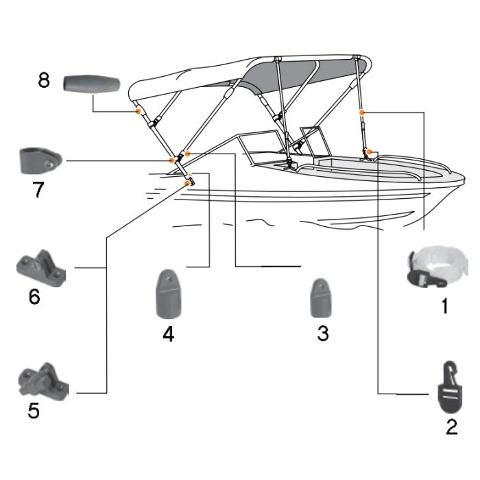 Diferentes piezas de repuesto para el reemplazo en su Toldo bimini.