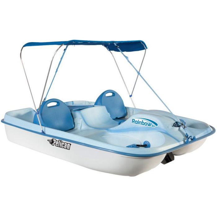 Barco a pedales • longitud 2,29 metros • anchura 1,60 metros • 5 plazas • peso 51 kg • parasol.