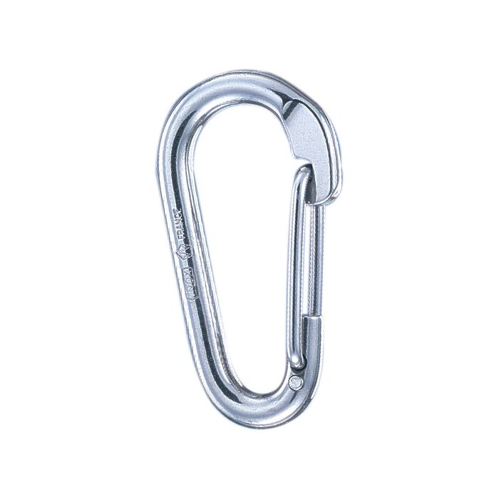 Mosquetón simétrico WICHARD de acero inoxidable para bomberos sin ojo.