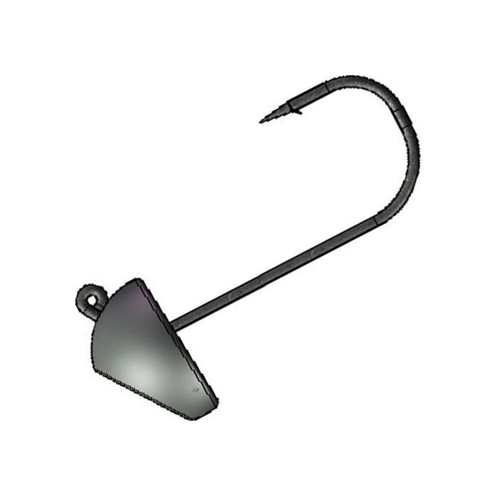 Cabeza plomada montado en anzuelo PROPIETARIO 5318, de hierro medio, su perfil "stand up" asegura un perfecto descenso del Señuelo, y la planitud de su parte inferior, le da una posición de 60° cuando el Señuelo está en reposo en la parte inferior. Esta posición sistemática del Señuelo le da la apariencia de un pez que se alimenta o de un cangrejo de río en posición defensiva.