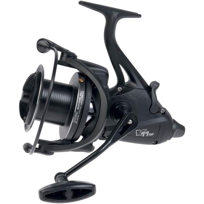 Carrete Baitfeeder para la pesca de carpas con un potente sistema de eje bi-infinito y gran capacidad de sedal.