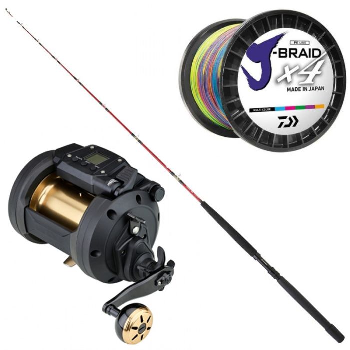 Carrete eléctrico Tanacom 1200 • Caña de pesca Daiwa Tanacom Boat 180 GDF • Bobina Daiwa Braid X4 1500 m 33/100 Hilo trenzado pesca