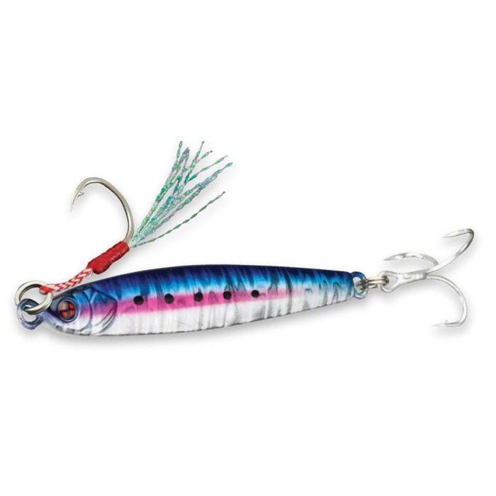 Muy versátil en nuestras costas, el Pazzo Jig 20, 30 y 40 g imita perfectamente a estos peces que a todos los depredadores marinos les gusta atiborrarse. Sólidos y cubiertos con pintura resistente y películas holográficas, estos jigs se entregan armados con un simple "assist" anzuelo posicionado en cabezal y embellecido con filamentos de Krystal Flash y un triple caudal. El borde ventral tiene un magnífico acabado de brillo fosforescente que le da un atractivo adicional en condiciones de poca luz: pesca nocturna, pesca en aguas profundas...