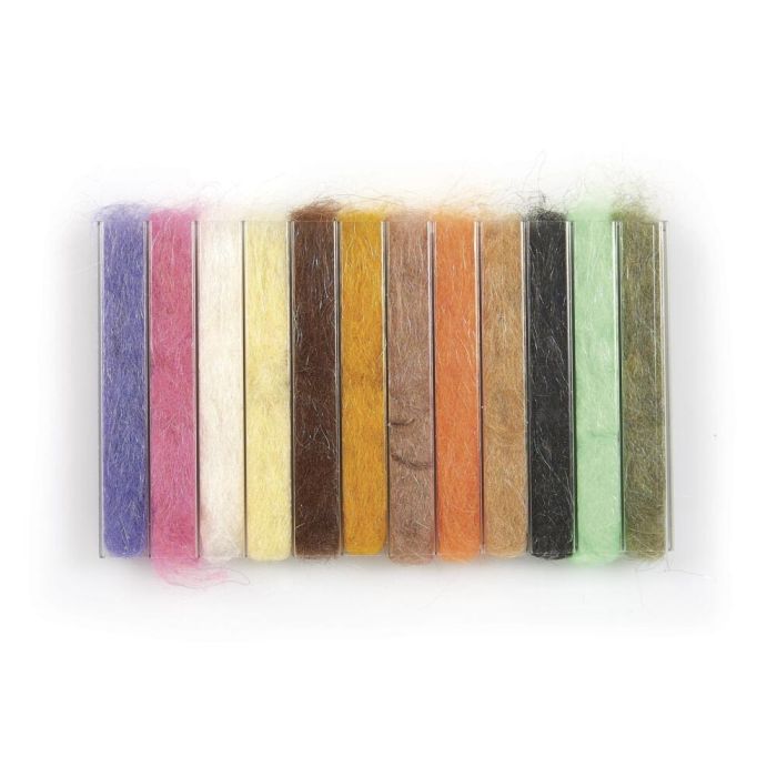 Surtido de 12 colores de doblaje presentados en dispensadores extraplanos.