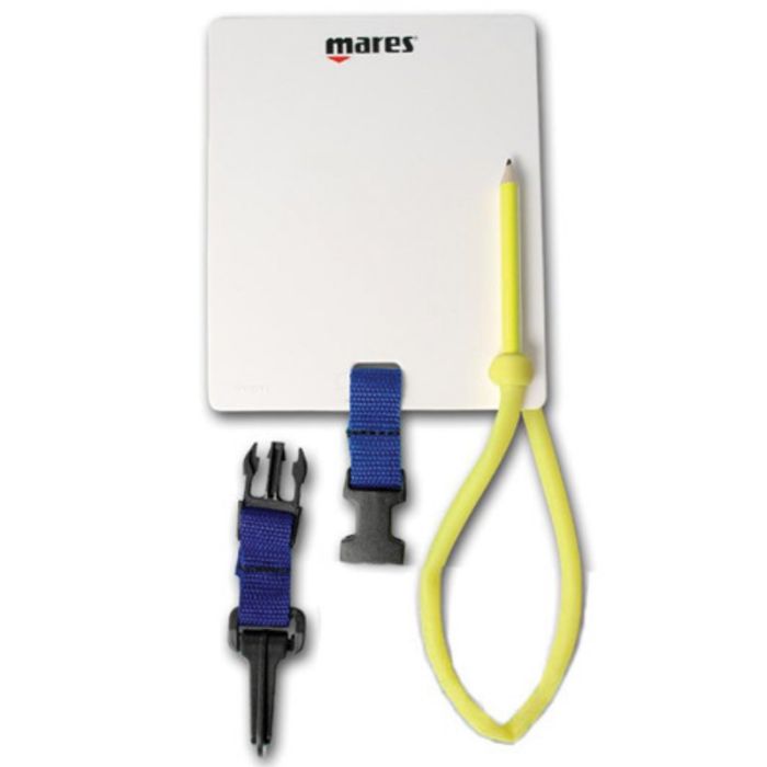 La pizarra subacuática, que se fija al chaleco, es la herramienta ideal para tomar notas bajo el agua, ya sea con fines profesionales durante cursos de formación o para datos personales mientras buceas.